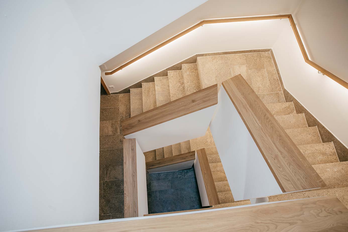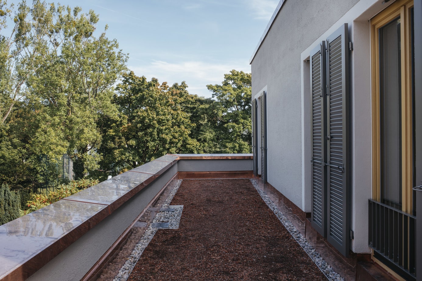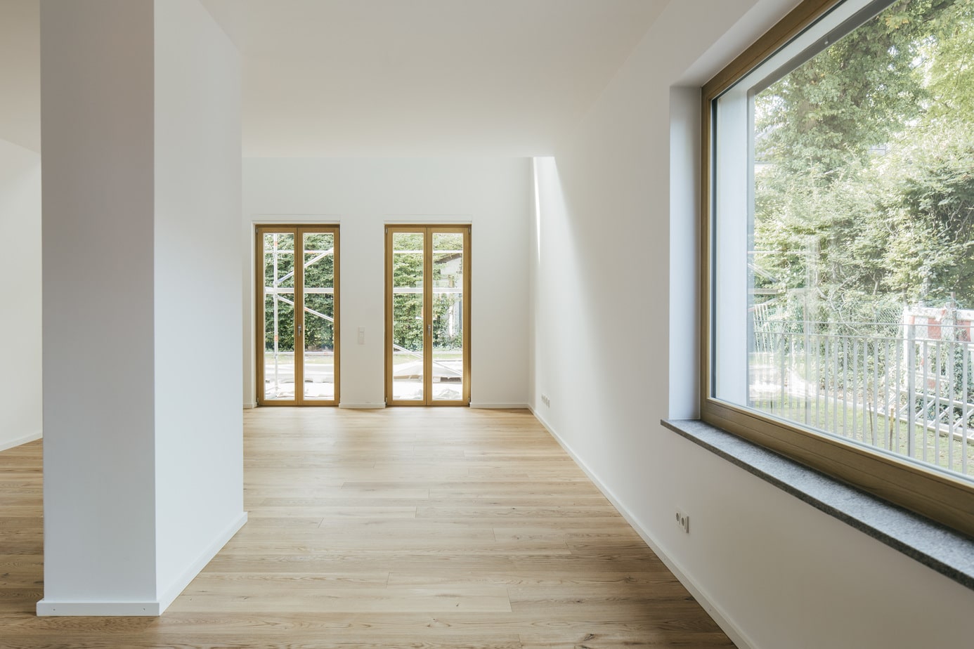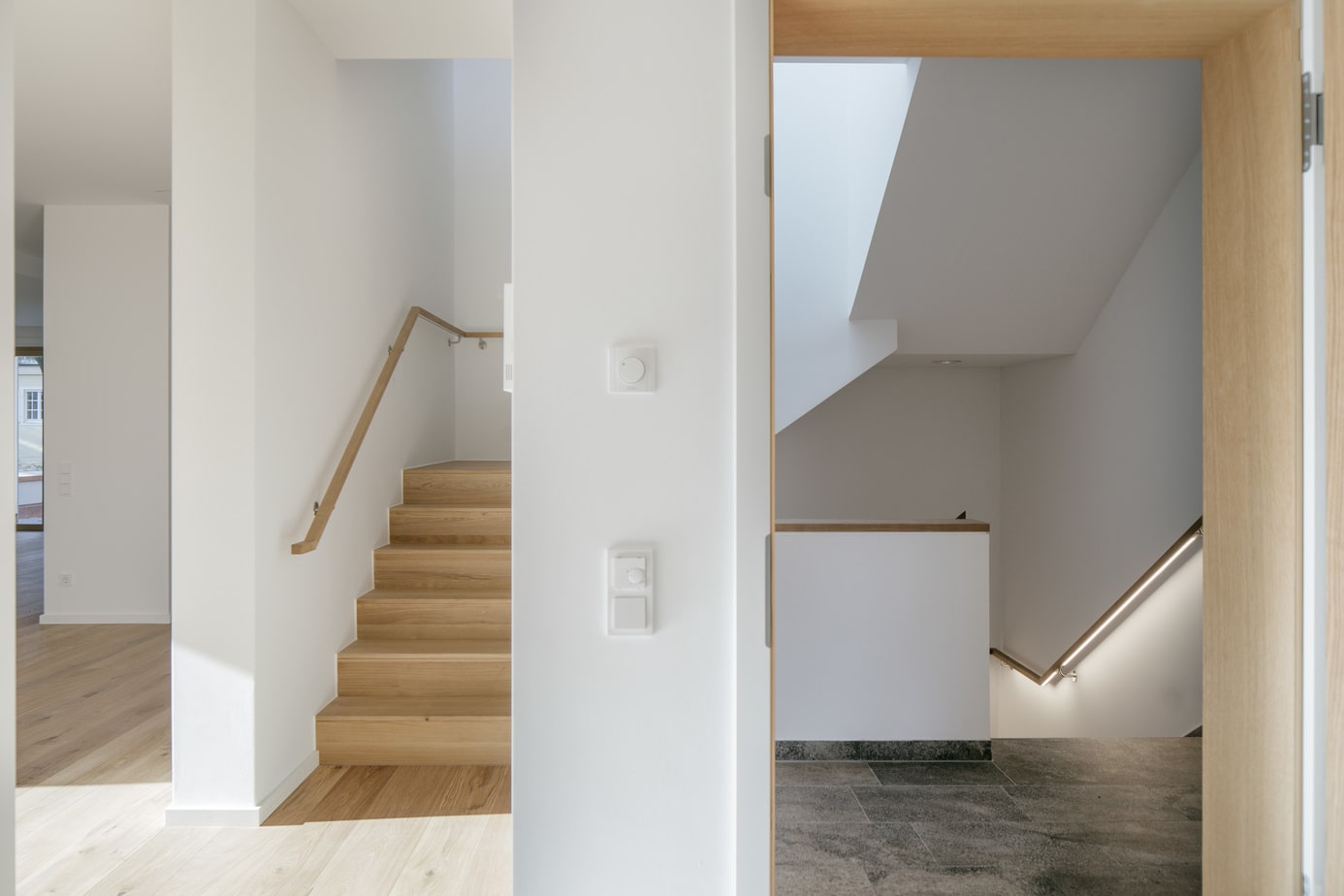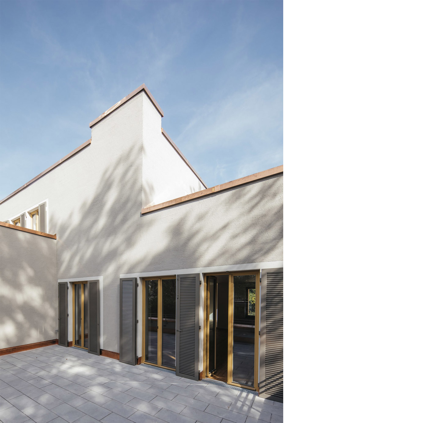Die reduzierte Material- und Farbwahl verleihen dem skulpturalen Baukörper einen zurückhaltenden und edlen Charakter. Er fügt sich damit zeitgemäß in den Wohnformen und harmonisch im Erscheinungsbild in die historische Villenbebauung des Stadtteils ein.