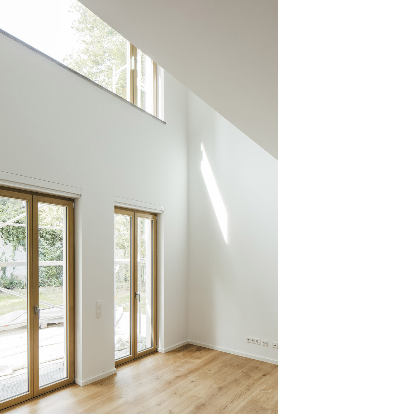 Das über drei Geschosse gegliederte Townhouse ermöglicht über den zweigeschossigen Wohnraum sowie mit dem Patio im Souterrain vertikale Bezüge zu angrenzenden Wohnebenen.