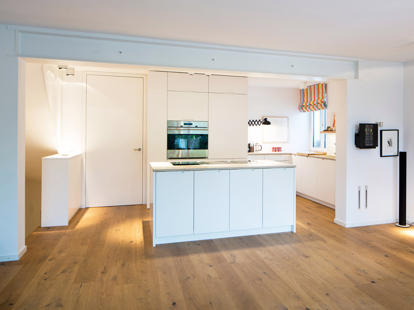 Durch Entkernen der Grundrisse entstanden großzügige Räume für ein offenes, zeitgemäßes Wohnen auf vier Ebenen.