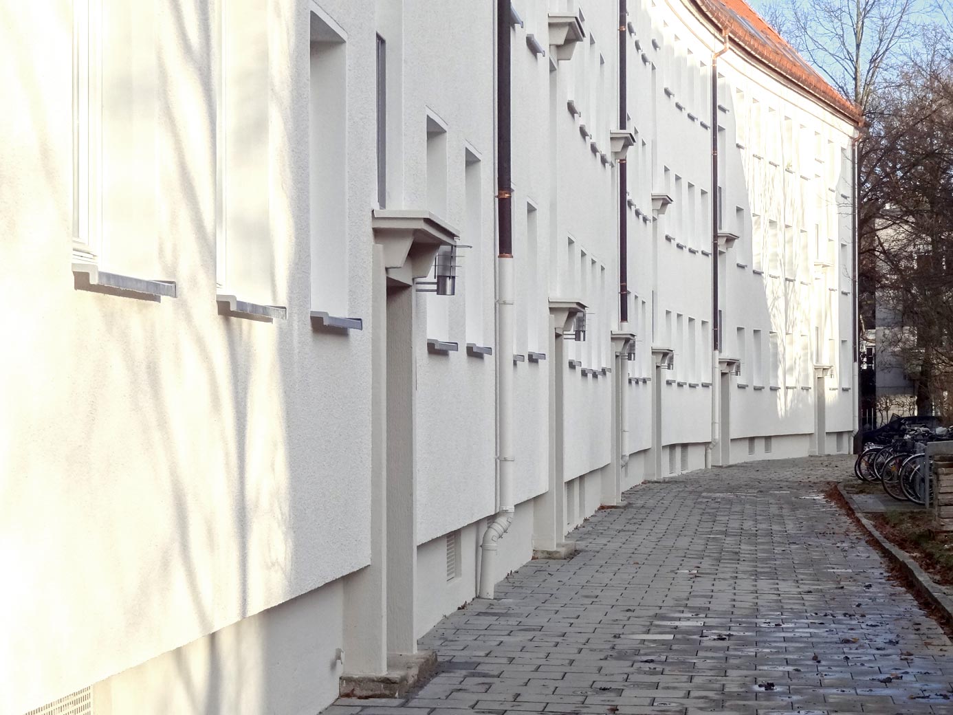 Die 4 Zeilen der Wohnsiedlung im Münchner Stadtteil Neuhausen wurden in den 1930-er Jahren erstellt und ab 1995 durch Dachausbauten sowie den Neubau einer Tiefgarage ergänzt. Sie sind Teil der ensemblegeschützten GEWOFAG-Siedlung „Neuhausen Nord“.