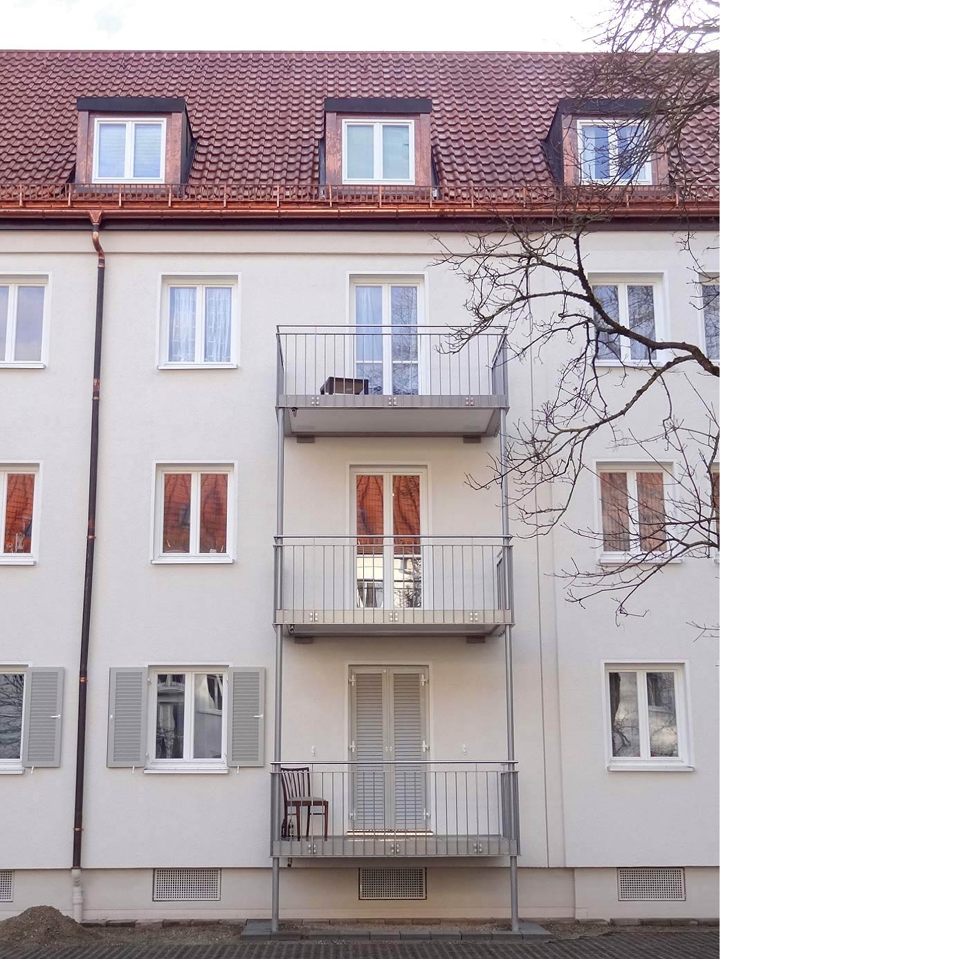 Die Auftraggeberin GEWOFAG Projekte GmbH gab vor, 154 Wohnungen energetisch zu sanieren und an das Fernwärmenetz der LH München anzuschließen. Die Planung der Sanierung und Modernisierung von Dach und Fassade entstand in enger Abstimmung mit der Unteren Denkmalschutzbehörde der LH München. Die Wohnqualität wurde durch den Bau neuer Balkone aufgewertet. Sämtliche Arbeiten fanden im bewohnten Zustand statt. Die Bauarbeiten wurden 2013 abgeschlossen.